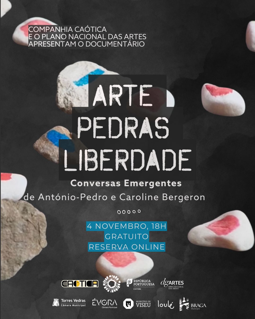 Fruto do projeto Conversas Emergentes, uma colaboração da Caótica com o Plano Nacional das Artes, o documentário Arte Pedras Liberdade propõe uma reflexão sensível sobre o valor da liberdade na criação e fruição. Dirigido por Caroline Bergeron e António-Pedro, o documentário escuta crianças e jovens acerca das suas experiências enquanto espectadores das artes performativas em Portugal, ao mesmo tempo que dialoga com profissionais do setor sobre os desafios de criar e programar para os mais novos.