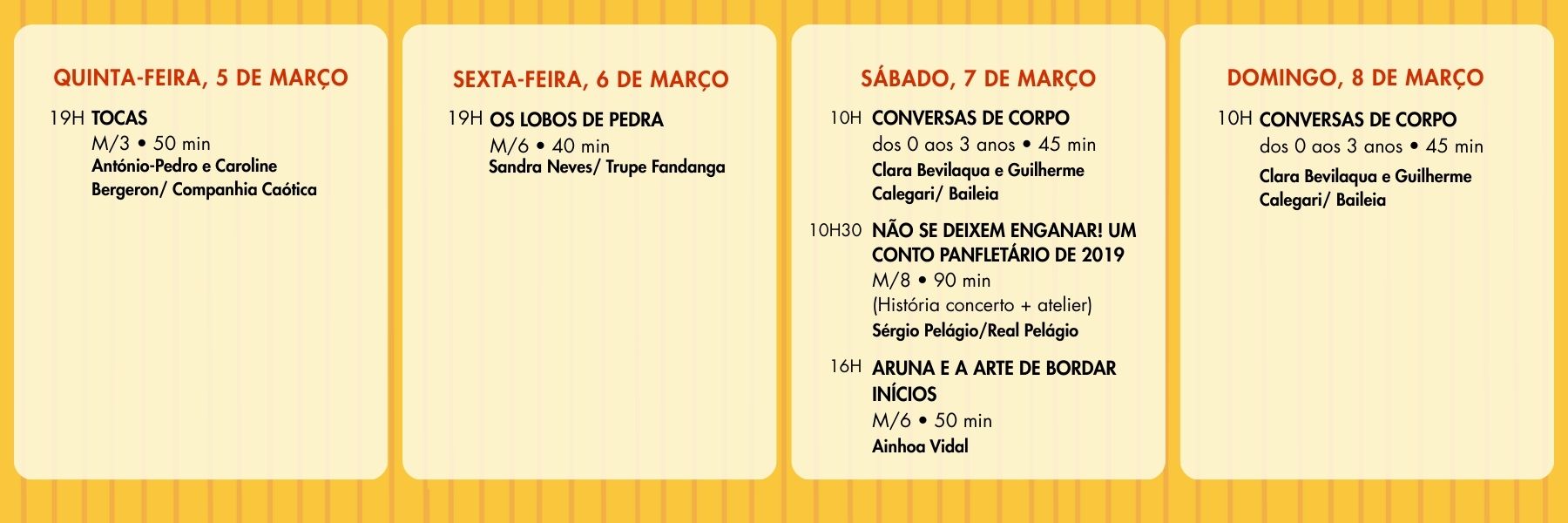 Quinta-feira, 5 de março, 10h30 e 14h30