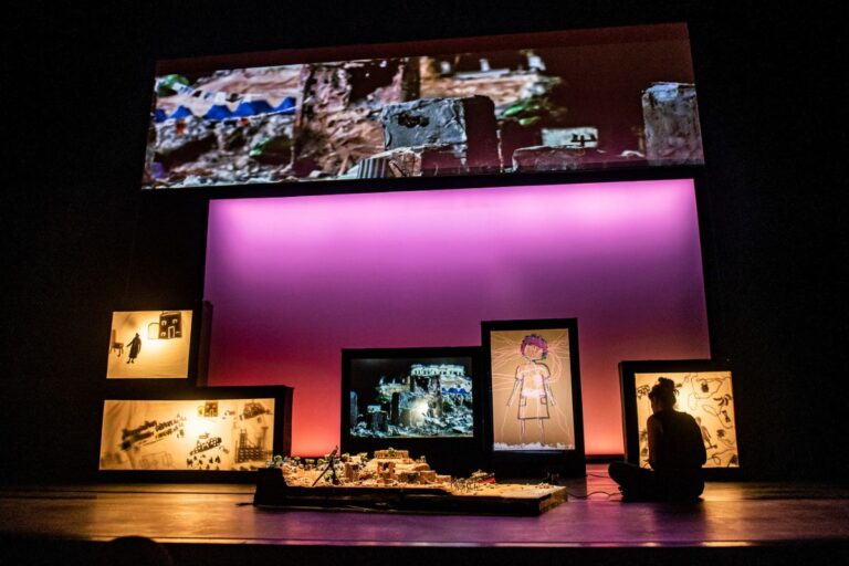 Tudo começa com um silêncio, o silêncio que antecede uma catástrofe. Há catástrofes e catástrofes, umas que nos afetam enquanto sociedade, outras individuais em que perdemos o chão que nos convinha. E depois desse acontecimento? Um recomeço, uma reconstrução — e é neste coração em guerra que encontramos sempre a nossa arma selvagem, a nossa força de coragem. A cidade perdeu o chão, Aruna perdeu a gravidade. A partir de um teatro de sombras, uma criança, Aruna, de 10 anos, canta-nos a história de uma reconstrução social e humana em tempos de adversidade. O espetáculo convive com uma exposição feita por Eleonore Labatut e Simon Deprez, arquitetos dedicados ao trabalho de reconstrução em lugares atingidos por catástrofes naturais, que estará em exibição no Foyer do Teatro Viriato nos dias de espetáculo.