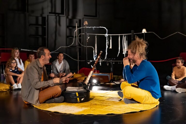 Dois músicos-performers estão no meio do público, abolindo o dentro-fora, o palco-plateia. Toda a gente a partilhar a mesma toca, protegendo-se e cuidando uns dos outros. Lá fora pode chover ou fazer frio, mas aqui estamos quentinhos e a fazer por estar bem. Temos direito, não é?